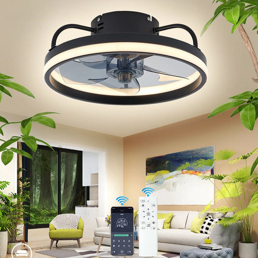 LuxiLamps - LED Ventilator Plafondlamp - APP - Plafondventilator - Zwart - Met Dimmer - 33 cm - 6 Standen Ventilator - Keuken Lamp - Woonkamerlamp - Moderne Lamp