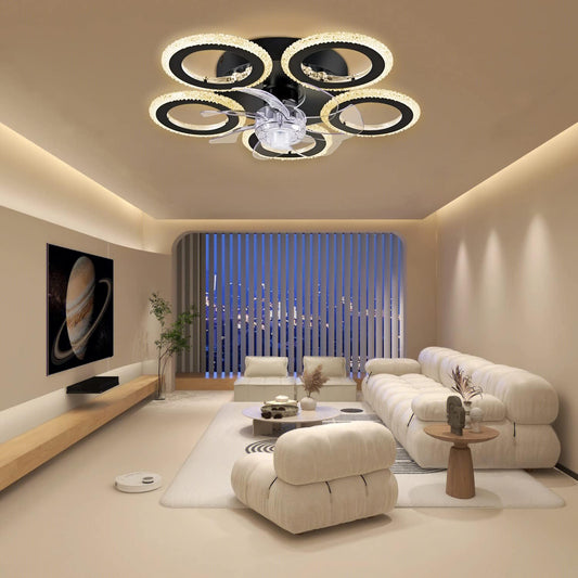 5 Ringen Crystal Plafondlamp - Plafondventilator - Smart Lamp - Met Dimmer - 6 Standen Ventilator