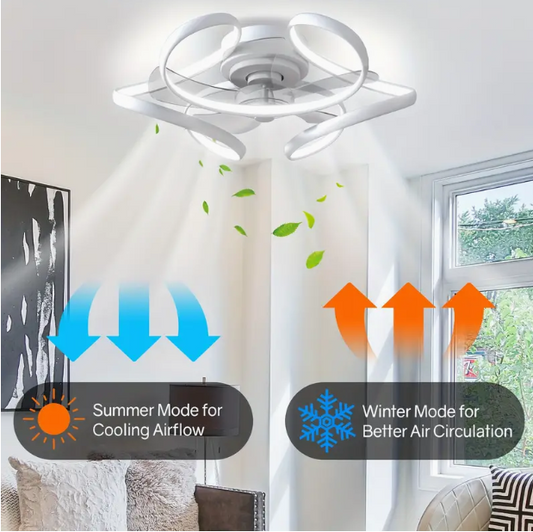 LuxiLamps - Krullen Ventilator Plafondlamp - Plafondventilator 50 cm - Wit - Smart Lamp - Met Dimmer - 6 Standen Ventilator - Keuken Lamp - Woonkamer Lamp - Moderne Lamp - Slaapkamer Lamp
