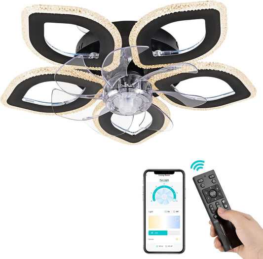 6 Lotus Kristallen Ventilator Lamp - Crystal Plafondventilator - Smart Lamp - Met Dimmer - 3 Standen Ventilator - Keuken Lamp - Woonkamer Lamp - Moderne Lamp