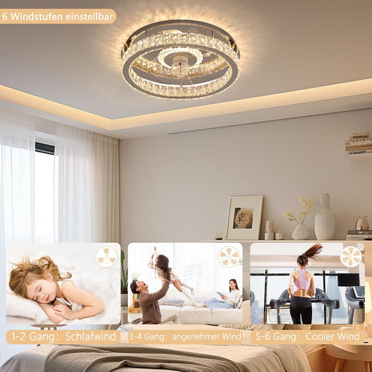 LuxiLamps - Crystal Ventilator Plafondlamp - Plafondventilator - Kristallen - Dimbaar - 50 cm - 6 Standen Ventilator - Keuken Lamp - Woonkamerlamp - Moderne lamp