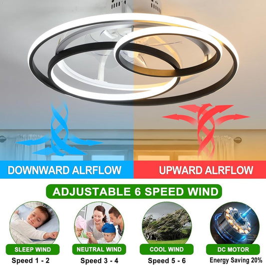 LuxiLamps - Krullen Ventilator Plafondlamp - Plafondventilator 50 cm - Zwart - Smart Lamp - Met Dimmer - 6 Standen Ventilator - Keuken Lamp - Woonkamer Lamp - Moderne Lamp - Slaapkamer Lamp Ventilator