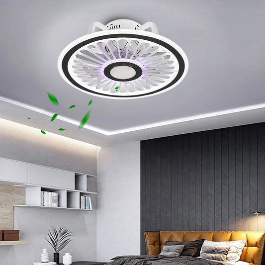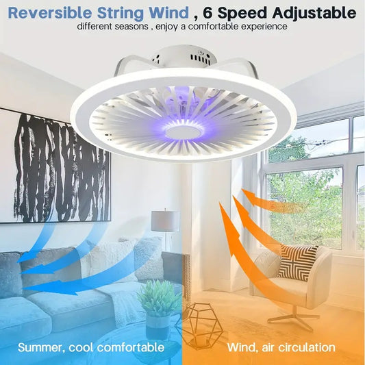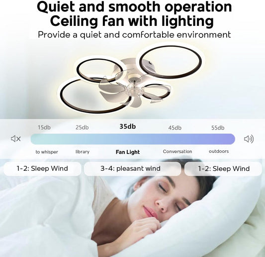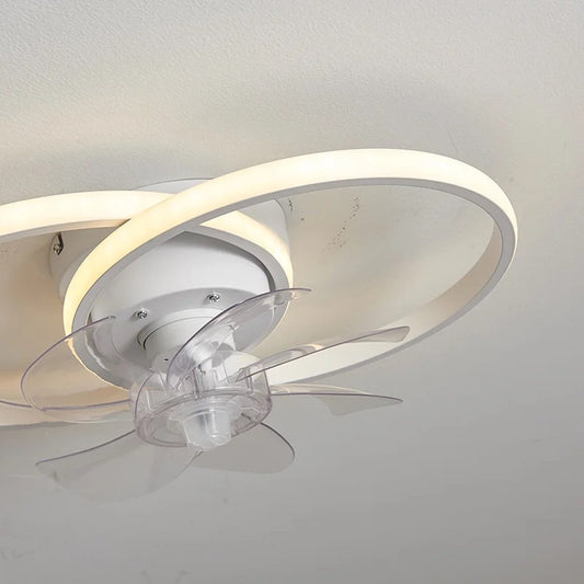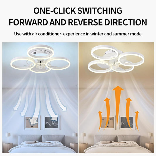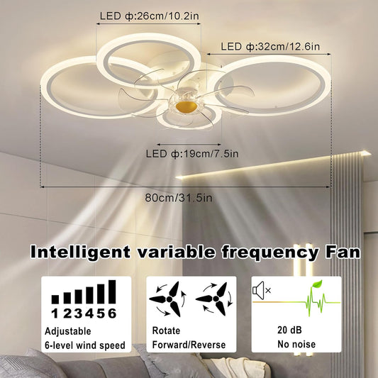 LuxiLamps - 4 Ringen LED Plafondventilator - Wit - 6 Snelheden - Smart lamp - Dimbaar Met Afstandsbediening & APP - Moderne Cirkel Ventilator Licht - Kroonluchter Ventilator
