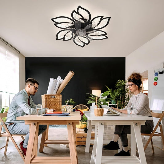 LuxiLamps - 5 Kop Bloem Ventilator - Plafondventilator - Zwart - Dimbaar - 6 Standen Ventilator - Keuken Lamp - Woonkamerlamp - Moderne Ventilator Lamp