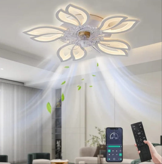 5 Kop Bloem Ventilator - Plafondventilator - Wit - Dimbaar - 6 Standen Ventilator - Keuken Lamp - Woonkamerlamp - Moderne Ventilator Lamp