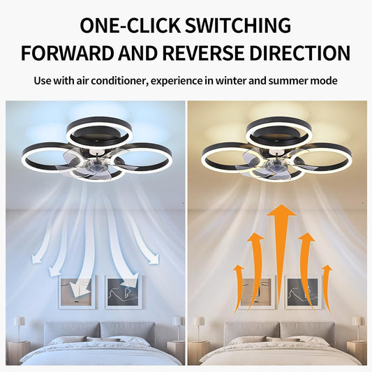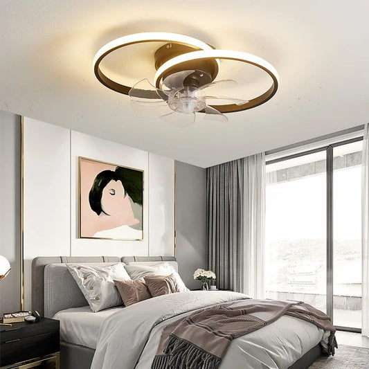 LuxiLamps - 4 Ringen LED Plafondventilator - Zwart - 6 Snelheden - Smart lamp - Dimbaar Met Afstandsbediening & APP - Moderne Cirkel Ventilator Licht - Kroonluchter Ventilator