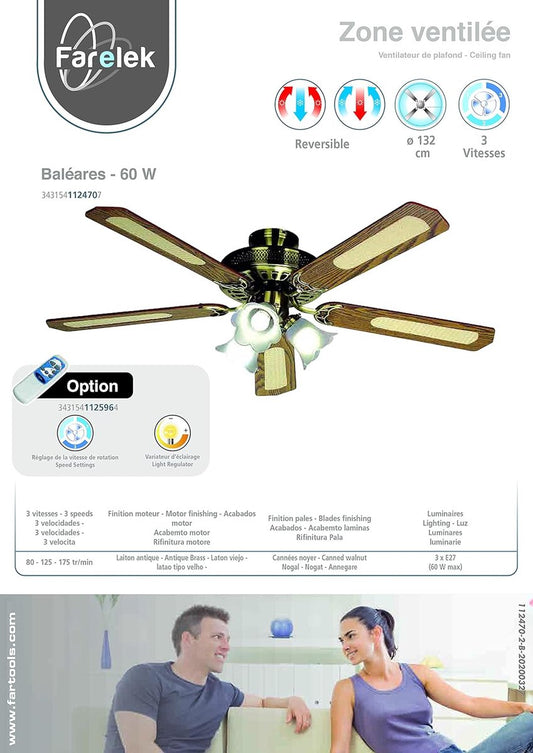 LuxiLamps - 5 Kop Bloem Plafondventilator - Dimbaar Met Afstandsbediening - E27 - 3 Snelheden - 132 cm - Slimme Ventilator