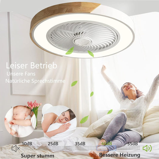 LuxiLamps - Houten Ventilator Lamp - Plafondventilator - Wit/Hout - Smart Lamp - Met Dimmer - 6 Standen Ventilator - Keuken Lamp - Woonkamerlamp - Moderne lamp