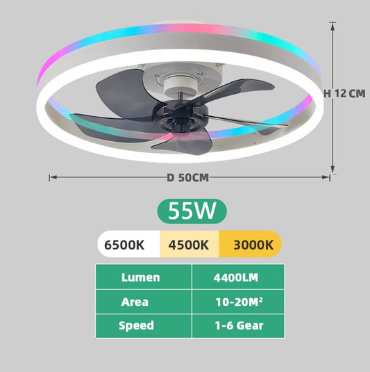 Bluetooth RGB Plafondventilator | 12 Kleuren | Met Speaker | Dimbaar Met Afstandsbediening | 40W | RGB Ventilator | Woonkamerlamp