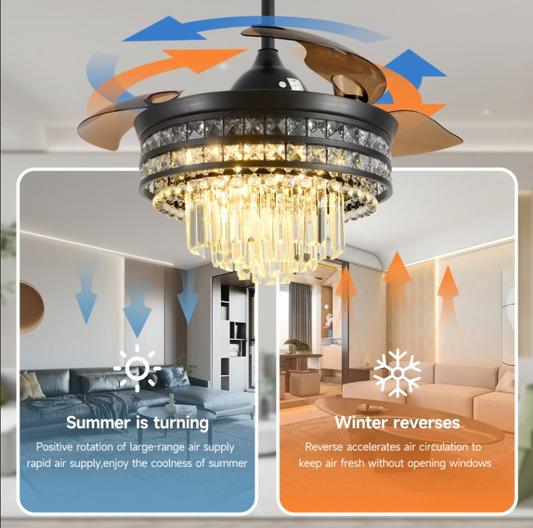 LuxiLamps - Hanglamp Kristallen Ventilator - 6 Standen - Dimbaar - Crystal Kroonluchter Ventilator - Zwart - Woonkamer Lamp