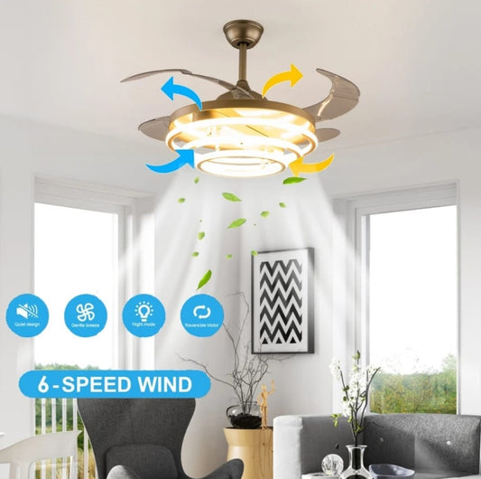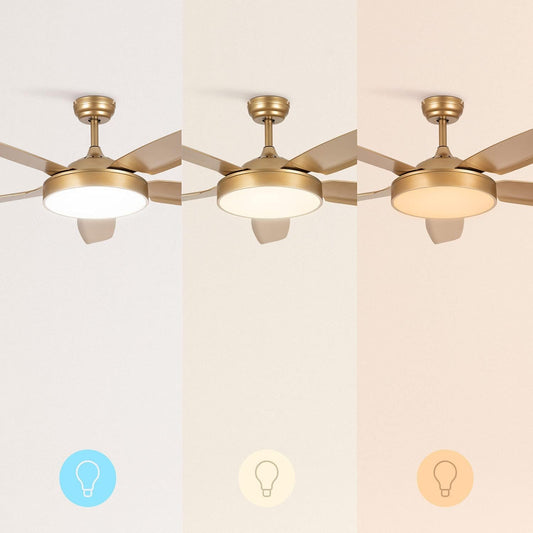 LuxiLamps - 5 Blad Plafondventilator - Moderne LED Ventilator - Smart Lamp - Wifi - 6 Snelheden - Fluisterstil - Bedienbaar Met Afstandsbediening & APP - 132 cm - Goud - Slimme Ventilator