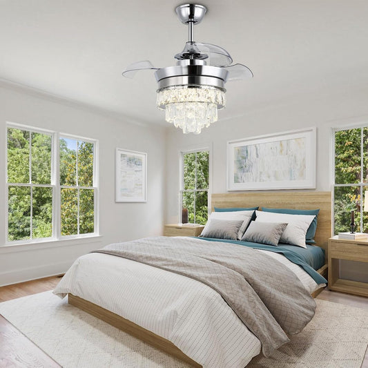 3 Ring Crystal Ventilator Lamp - Met Afstandsbediening - Stille Ventilator - 106 cm - Chroom - Timer - Woonkamerlamp Ventilator - Moderne Plafond Ventilator Lamp - Kroonluchter Ventilator