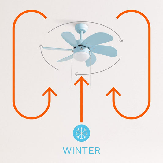 LuxiLamps - Stille 6 Blad Plafondventilator - 3 Snelheden - Ketting Schakelaar - Omkeerbaar Blad - 80 cm - Blauw - Woonkamerlamp - Keuken - Slaapkamer - Moderne Ventilator Lamp