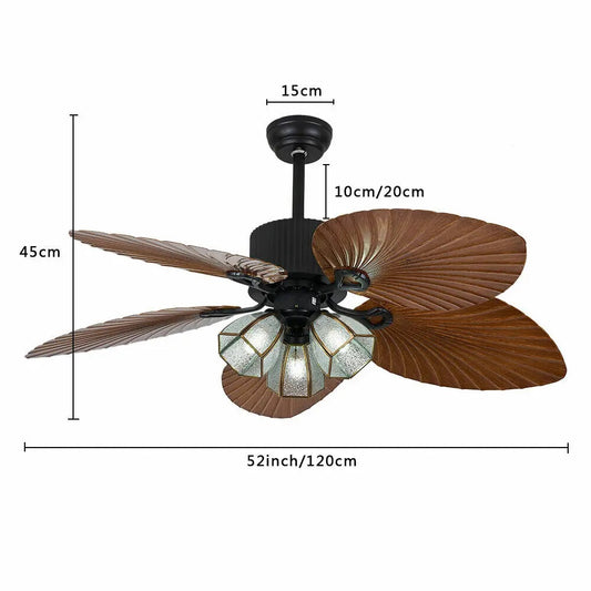 LuxiLamps - Palmblad Ventilator Lamp - Industriële Plafondventilator - E27 - Dimbaar Met Afstandsbediening - 3 Snelheden - Retro Tropische Plafondventilator - 120 cm
