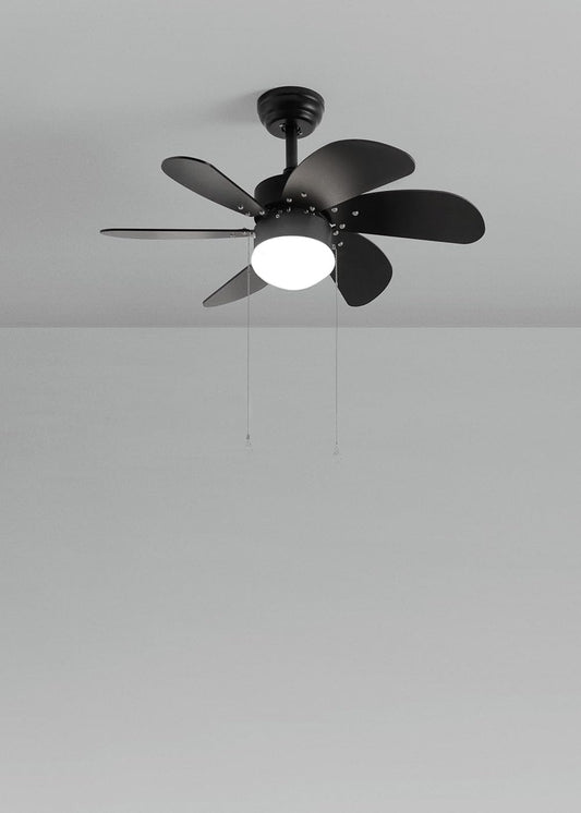 LuxiLamps - Stille 6 Blad Plafondventilator - 3 Snelheden - Ketting Schakelaar - 80 cm - Zwart - Woonkamerlamp - Keuken - Slaapkamer - Moderne Ventilator Lamp
