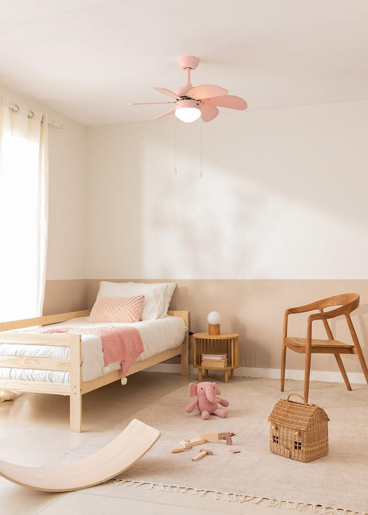 LuxiLamps - Stille 6 Blad Plafondventilator - 3 Snelheden - Ketting Schakelaar - Omkeerbaar Blad - 80 cm - Roze - Woonkamerlamp - Keuken - Slaapkamer - Moderne Ventilator Lamp