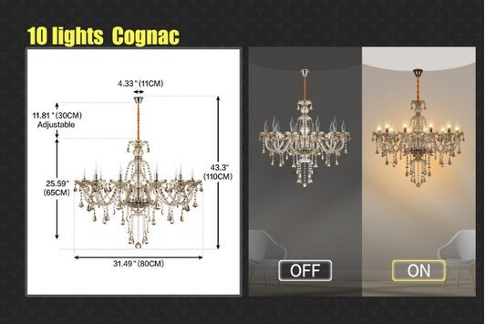 LuxiLamps - Crystal Chandelier - 10 Arm Crystal Chandelier - Pendant Lamp - Living Room Lamp - Modern Lamp - Ceiling Lamp