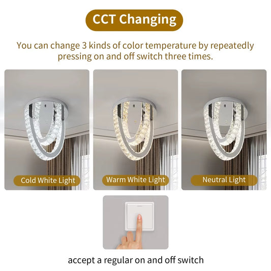 2 Ring Crystal Plafondlamp - Luxe LED Plafondlamp - Chroom - Woondecoratie - 3 Kleuren - Kristallen Kroonluchter - Moderne Plafondlamp - 30 cm