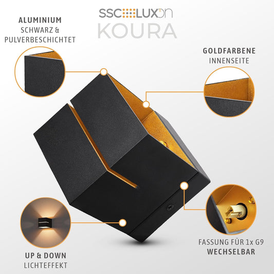 LuxiLamps - Led Wandlamp - Moderne Wandverlichting - Met Lichtgleuf - Goud/Zwart - Hal lamp - G9 - Trappenhuis - 16 cm
