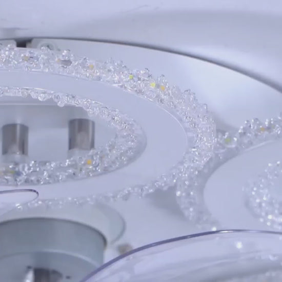 6 Ringen Kristallen Plafondventilator - Wit - 6 Snelheden - Smart lamp - Dimbaar Met Afstandsbediening & APP - Moderne Cirkel Ventilator Licht - Crystal Kroonluchter Ventilator