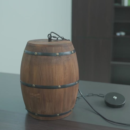 Wooden Wine Barrel Pendant Lamp - Vintage Retro Chandelier - Black - 90 Cm Adjustable Chain - E27