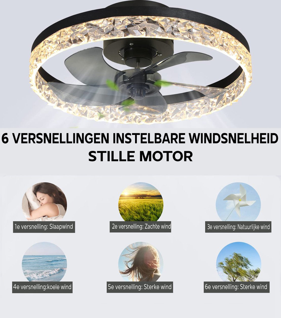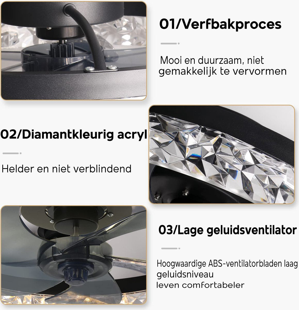 Fan Lamp - Ceiling Fan Black - Smart Lamp - With Dimmer - 6 Speed Fan - Kitchen Lamp - Living Room Lamp - Modern Lamp