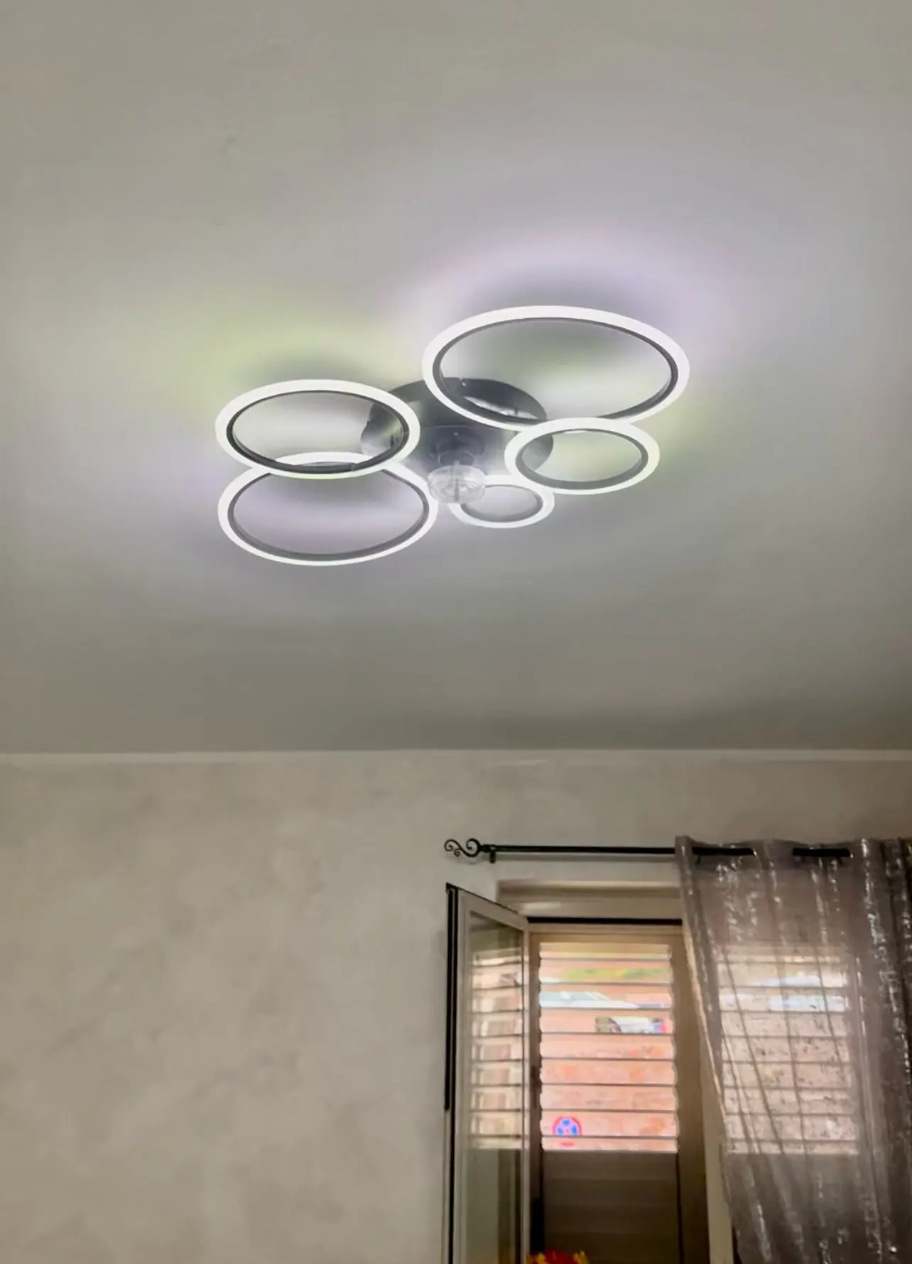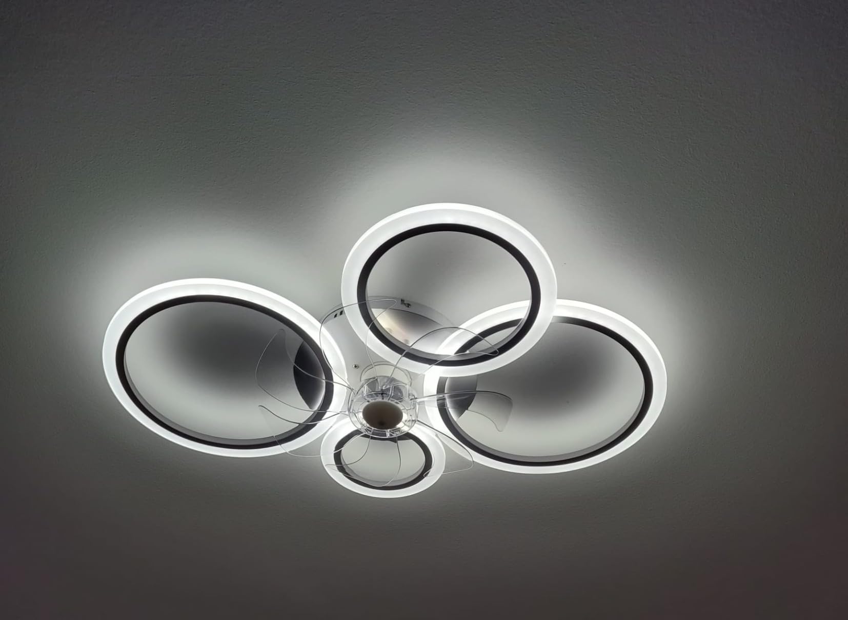 LuxiLamps - 4 Ringen LED Plafondventilator - Wit - 6 Snelheden - Smart lamp - Dimbaar Met Afstandsbediening & APP - Moderne Cirkel Ventilator Licht - Kroonluchter Ventilator