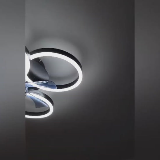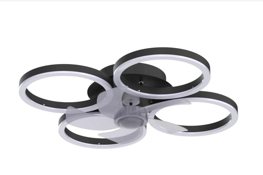 LuxiLamps - 4 Ringen Ventilator - Zwart - 60 cm - Smart Lamp - Kroonluchter - Dimbaar Met Afstandsbediening - 64W