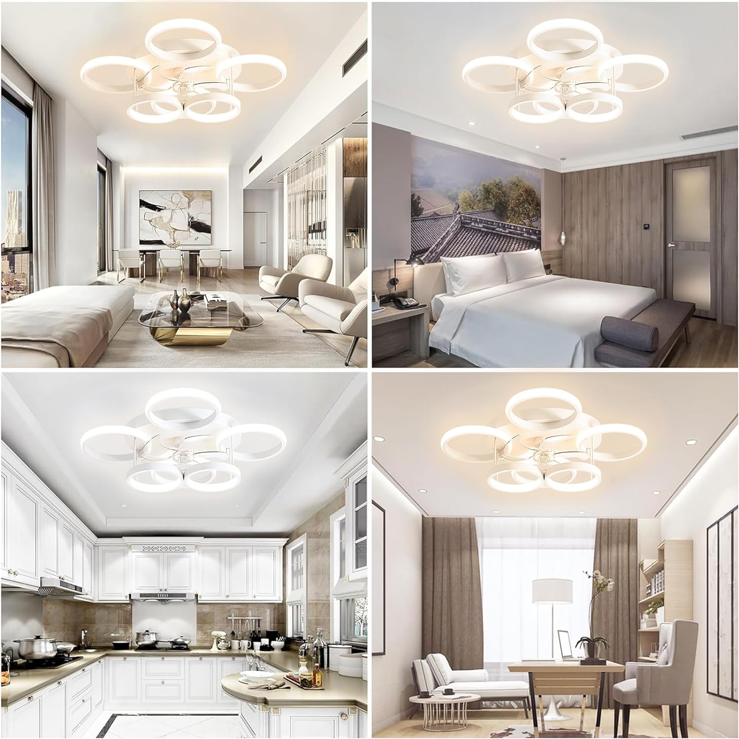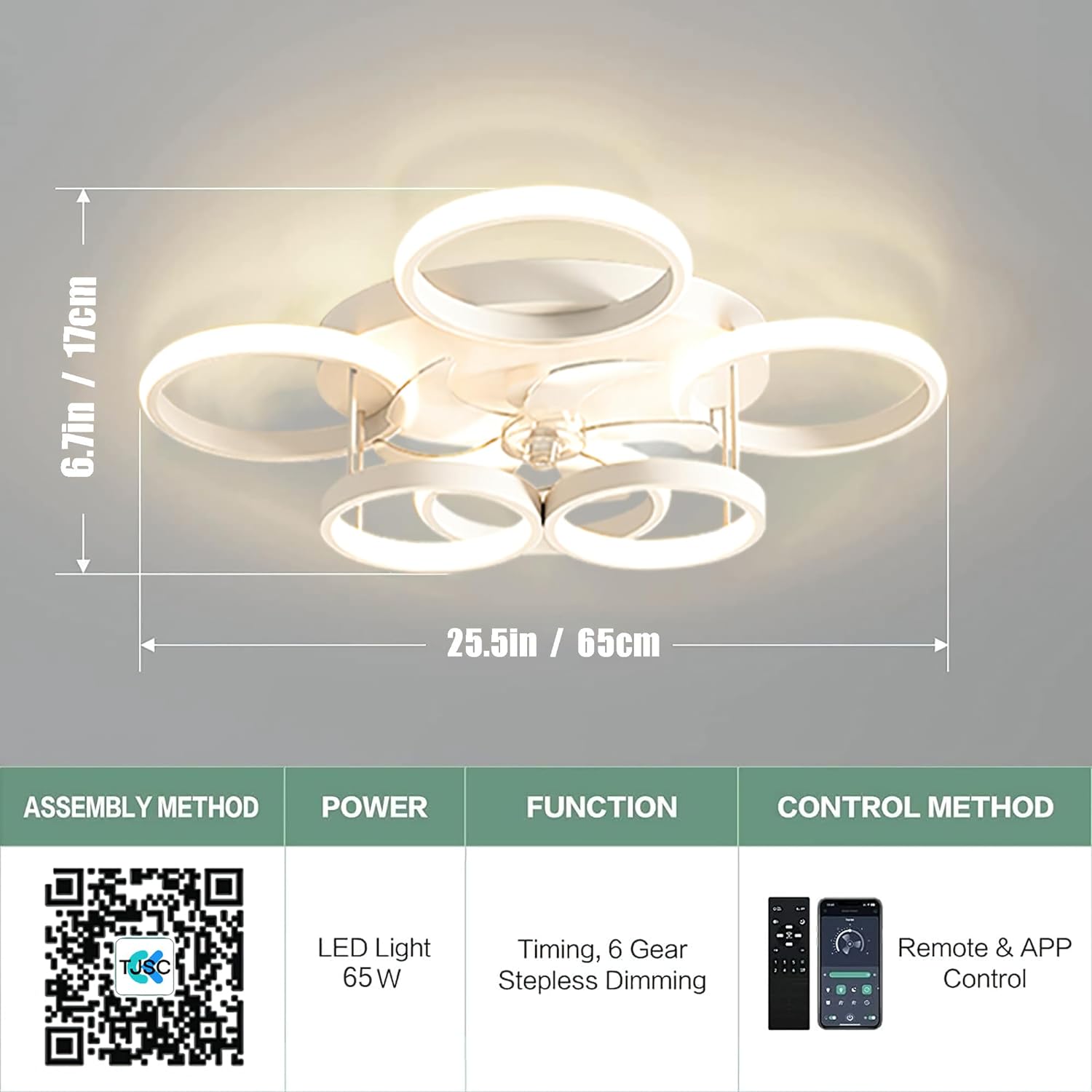 LuxiLamps - 6 Cirkel Plafondventilator - Wit - 6 Snelheden - Dimbaar Met Afstandsbediening en APP - Moderne Smart Lamp Ventilator