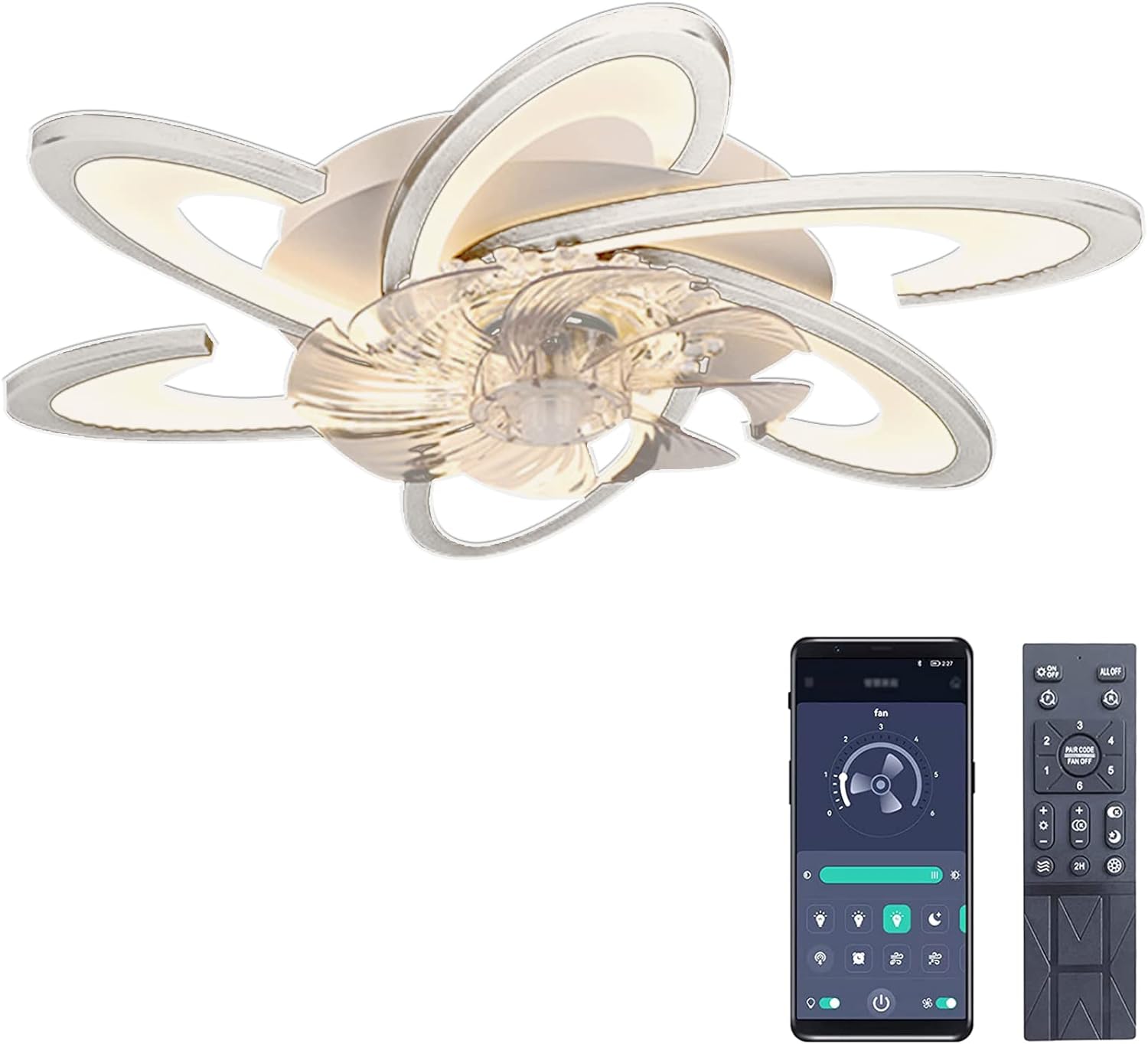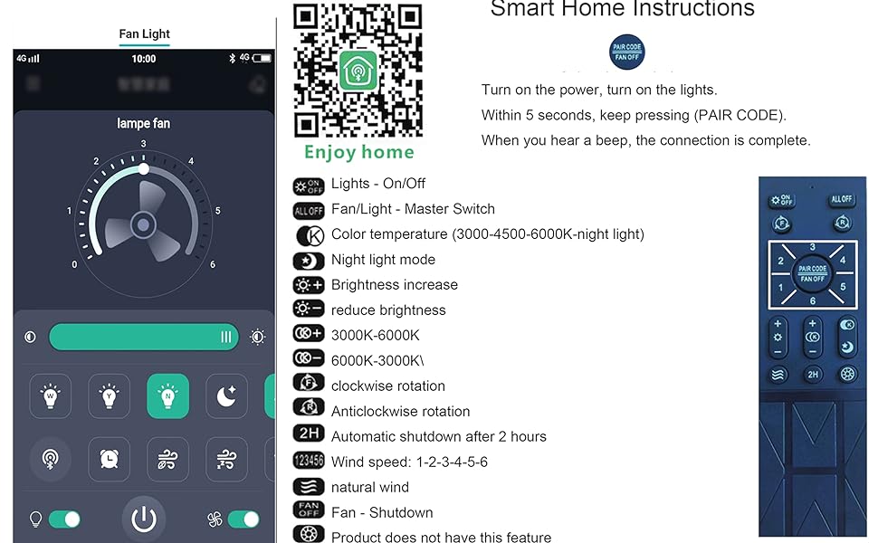 - Work separately or simultaneously: silent ceiling fan with light, app and remote control dimmable, color change, brightness dimmable, adjustable 6 forward/reverse gears, timer function, night light mode, white light, warm white, medium light.