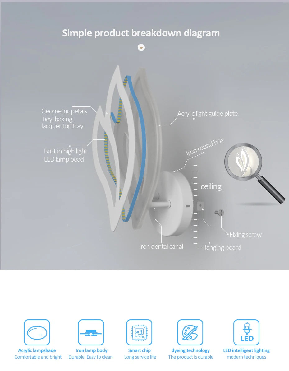 LuxiLamps - Flower Leaf Wall Lamp - Modern Wall Lamp - Warm White - Living Room Lamp - Bedroom - Wall Decoration