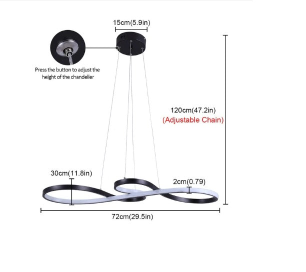 LuxiLamps - Pendant Lamp - Chandelier - Black - Living Room Lamp - Dimmable With Remote Control - Modern Lamp - Dining Room Lamp - LED Ceiling Lamp - Ceiling Light
