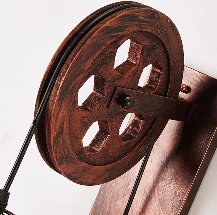 LuxiLamps- Klassieke Retro Wielvormige Wandlamp - E27 - Muur Verlichting - Warm Wit - Bruin - 40W - Industriële Metalen Wandlamp