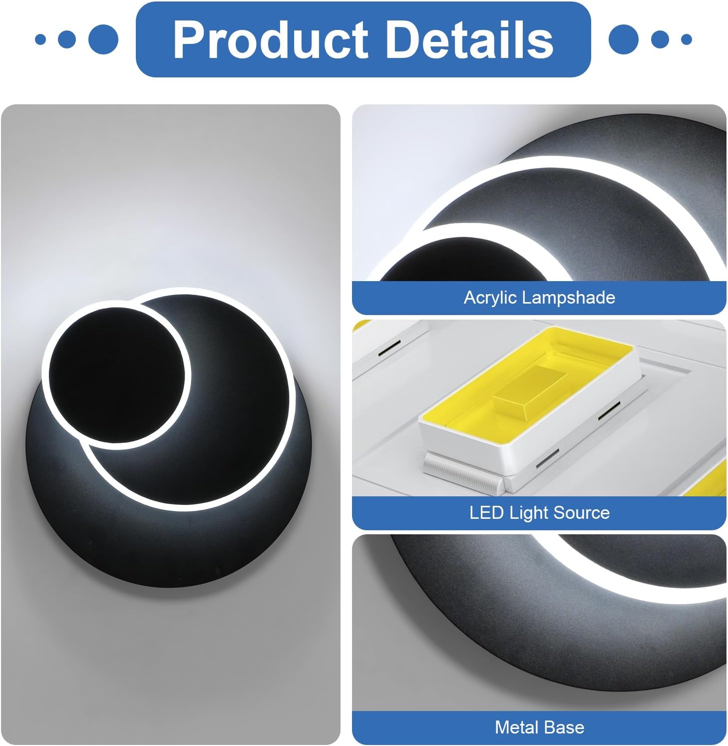- Hoogwaardig materiaal: De ronde metalen voet van de moderne binnenwandlamp is geverfd, waardoor deze niet gemakkelijk roest of corrodeert. De acryl kap maakt het licht gelijkmatiger en beschermt je ogen 's nachts
