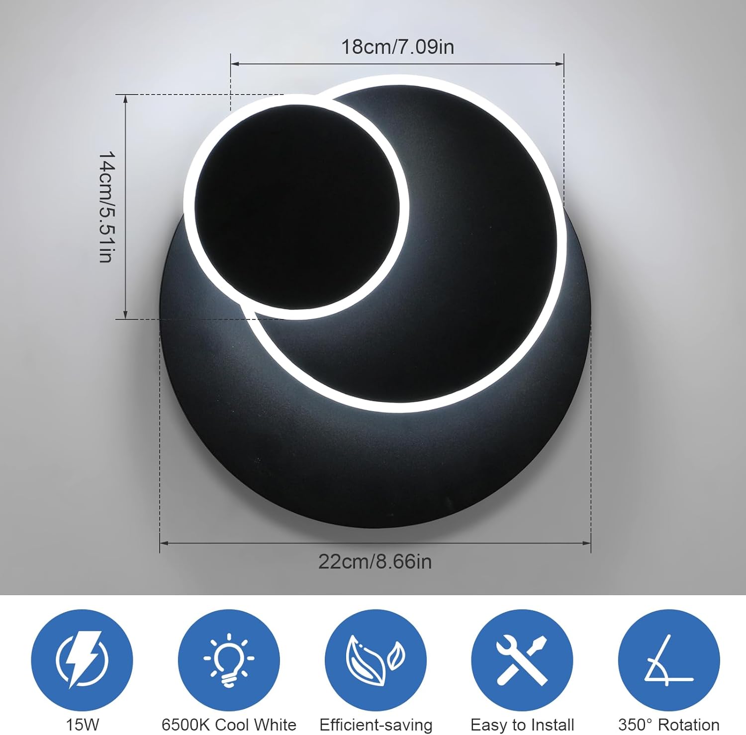- Draaibaar 350° : Deze muurlamp bestaat uit drie cirkels, twee ronde lichamen die 350 graden draaien; je kunt de hoek die je verkiest handmatig aanpassen, waardoor het ideaal is voor binnenverlichting en decoratie