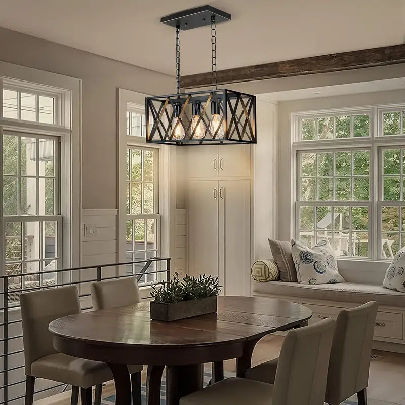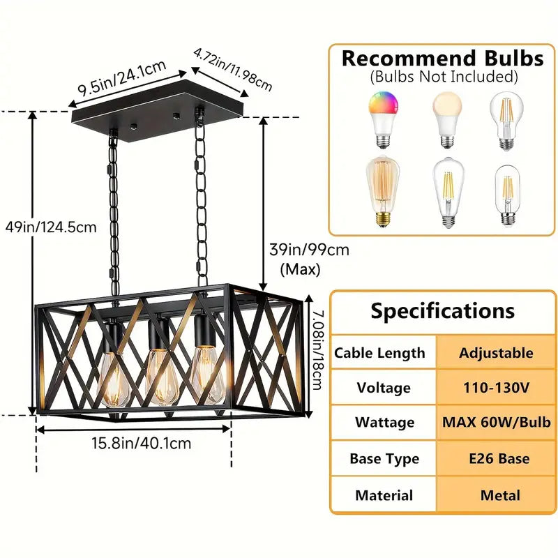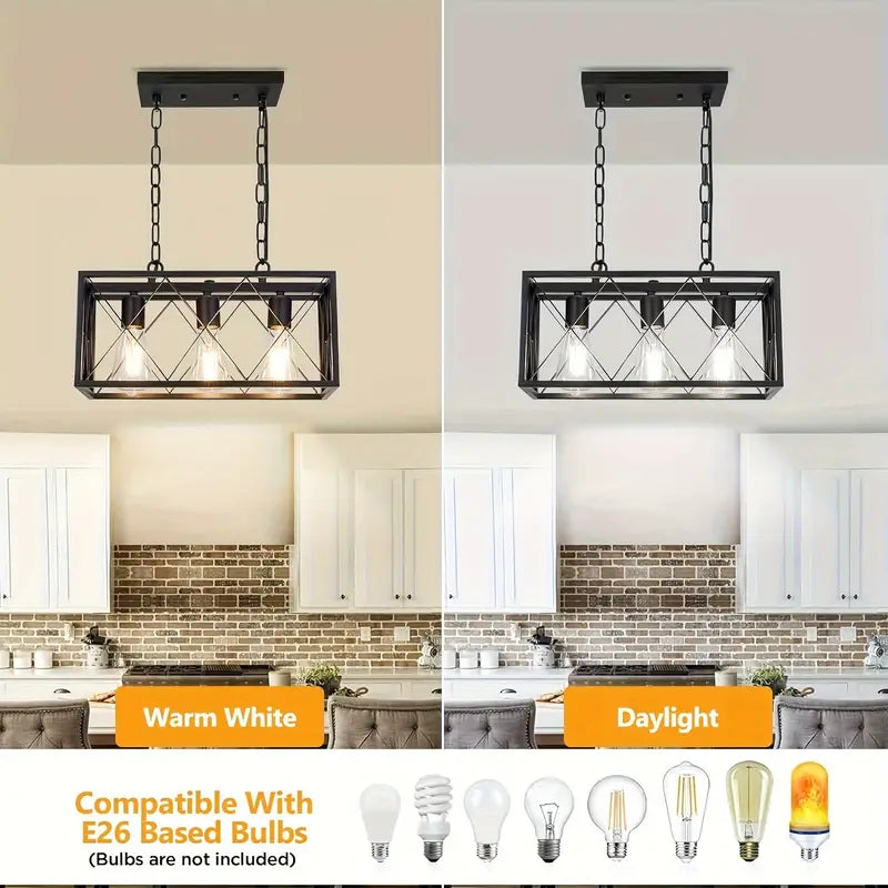 LuxiLamps - Vintage Boerderij Hanglamp - 3 Lichten - Metaal Kroonluchter - E27 - Kooi Design