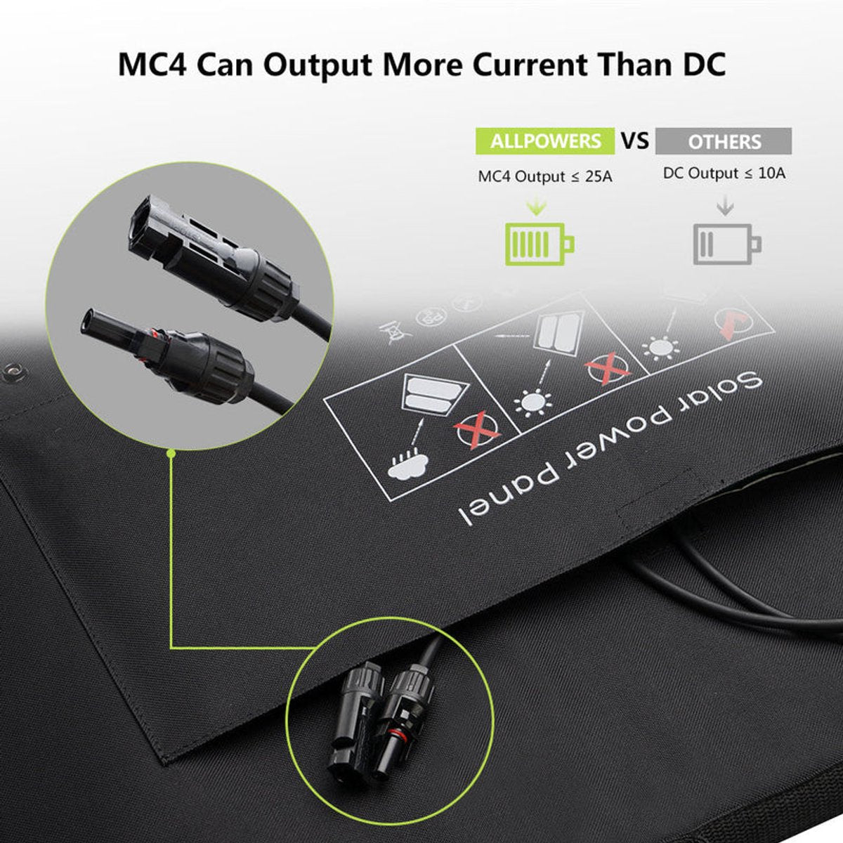▶Multi-Contact 4 en 4-in-één meervoudige uitvoermethoden: Multi-Contact 4-uitvoer kan 20A (max) stroom leveren, terwijl de DC-poort slechts 10A draagt, dubbele USB-poort (5V/2,4A per poort) met iSolar-technologie voor het opladen van uw 5V-aangedreven gadgets en 18V DC-uitvoer (18V/3A) voor het opladen van uw laptop of 12V-auto-accu en draagbare generator, de parallelle aansluitpoort van de aansluitdoos voor het aansluiten van meerdere opvouwbare zonnepanelen.