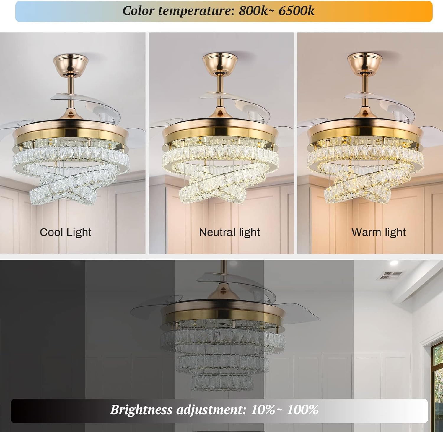 Plafondventilator: kristallen plafondventilator, afneembare acrylbladen, 3-in-1 ledverlichting, ledchips, koel wit, warm wit, neutraal licht.