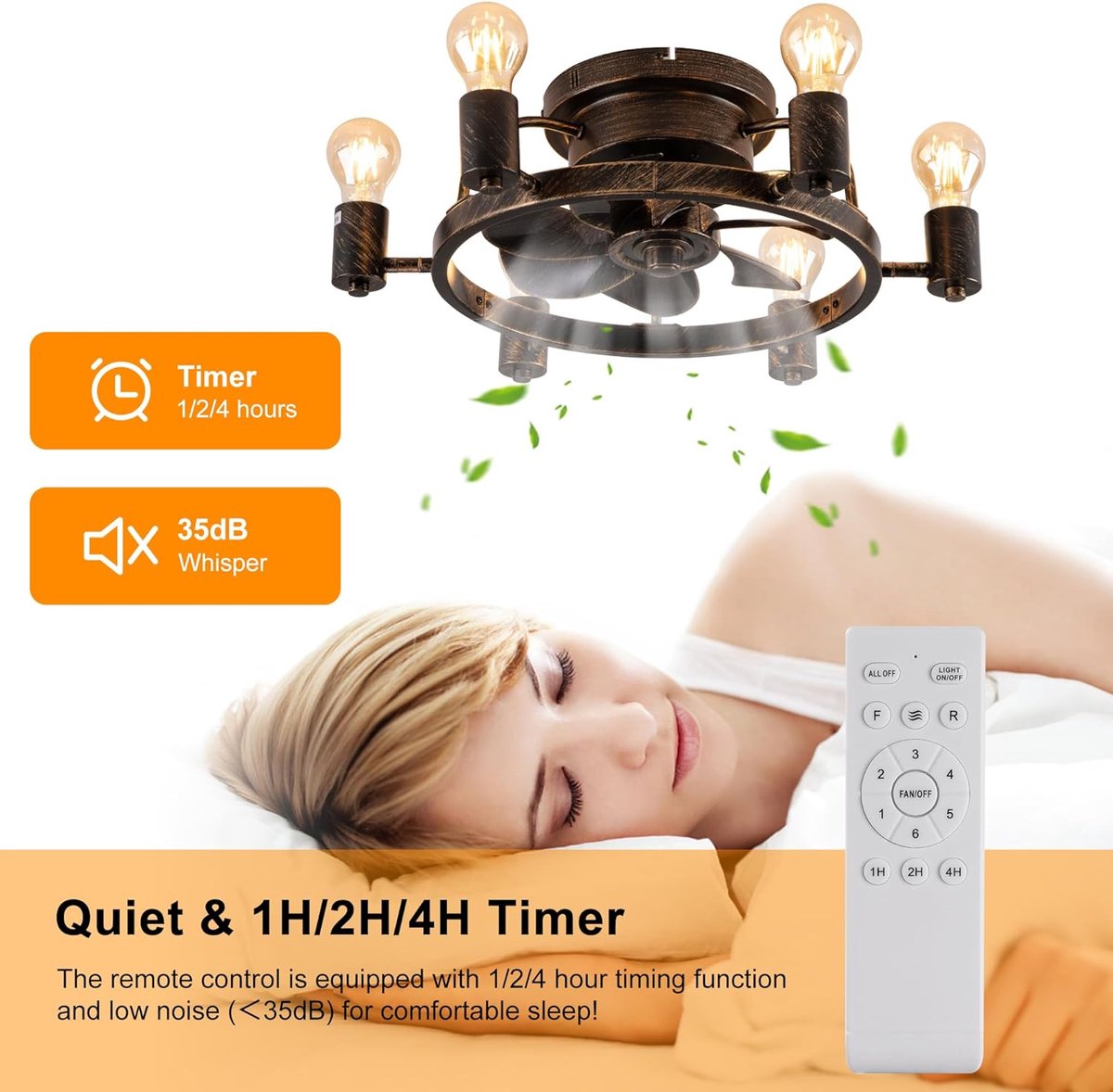 Industriële Retrostijl Plafondventilator - Ventilator Lamp - Smart Lamp - Dimbaar - 6 Standen - Moderne lamp - 6 Lampen - Bruin