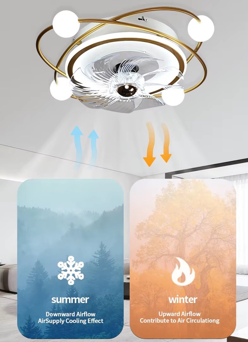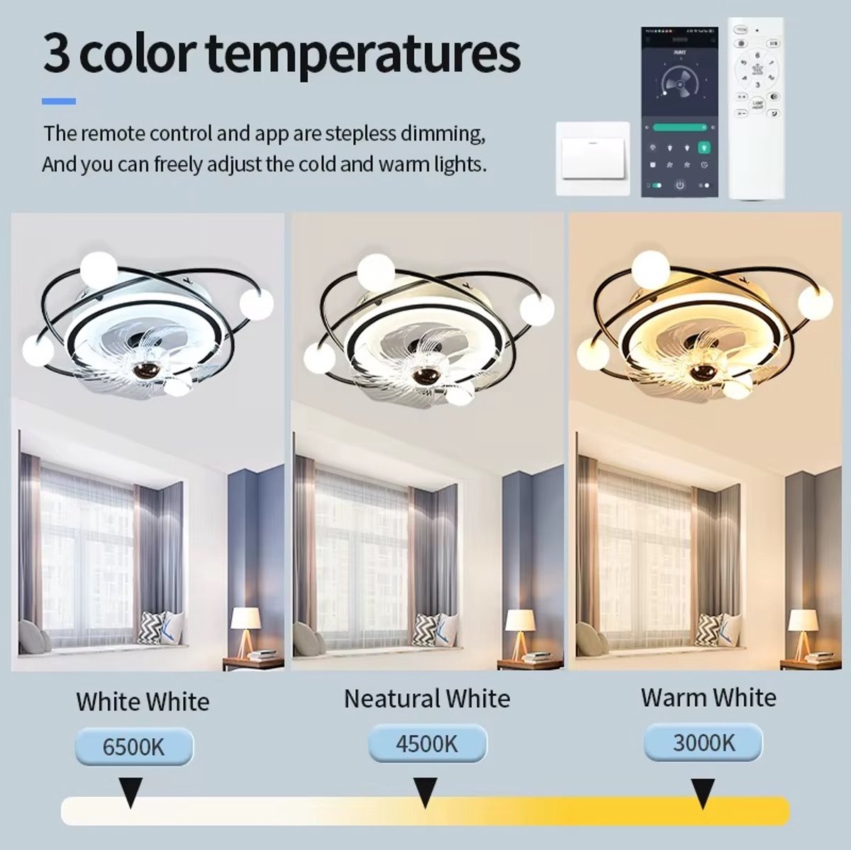 Mobiele\App-bediening ventilator, geen stappend dimmen en zes windsnelheden.U kunt de windsnelheid en kleurtemperatuur kiezen die bij u past.