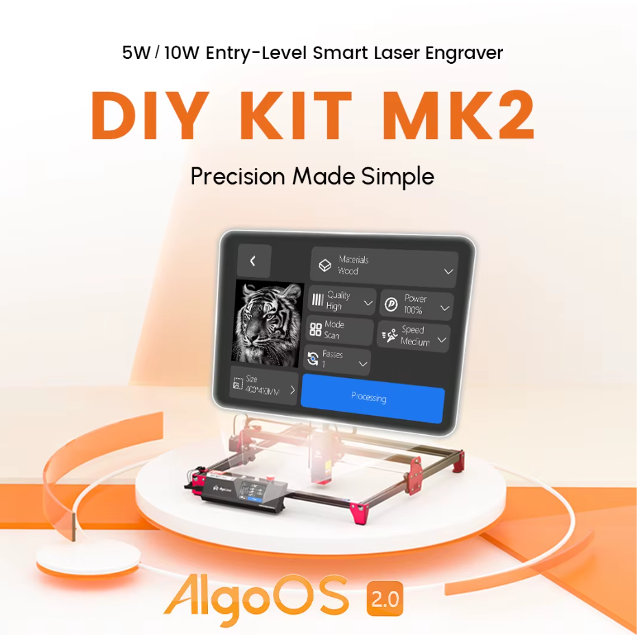 Ondersteuning van APP en offline graverenMaak op uw manier verbinding met de AlgoLaser DIY KIT MK2 10W lasergraveer- en snijmachine! Of het nu via USB, TF-kaart, WiFi of app is, de keuze is aan jou.Ga online of neem het offline, het is allemaal aan jou.En dankzij de compatibiliteit met professionele graveersoftware zoals LaserGRBLand LightBurn kunt u de software kiezen die bij uw stijl past!