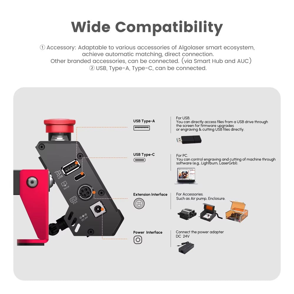 【3,5" touchscreen en 4 connectiviteitsopties】De AlgoLaser DIY KIT MK2 wordt geleverd met een gebruiksvriendelijk 3,5-inch touchscreen.Bewaak de voortgang, pas de snelheid aan en meer.Maak verbinding via SD-kaart, USB, app of computer IP-adres.Het is compatibel met LaserGRBL- en LightBurn-software en ondersteunt BMP, JPG, PNG, DXF, AI, SVG en meer.