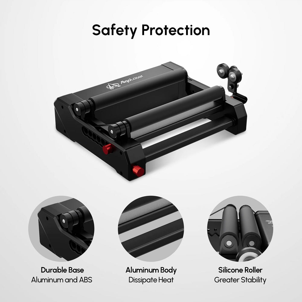 De AlgoLaser roterende rolset is bedoeld voor extra graveren en moet met de graveermachine werken.Het kan worden gebruikt voor het graveren van cilindrische/ronde/bekervormige/oversized voorwerpen zoals skateboards, bekers, roestvrijstalen mokken, gitaren, porseleinen mokken, pennen, honkbalknuppels, blikjes, glazen flessen, enz.Kortom, tijdens het werkproces speelt het een zeer goede rol bij het ondersteunen, verhogen, roteren en fixeren van het gegraveerde object.