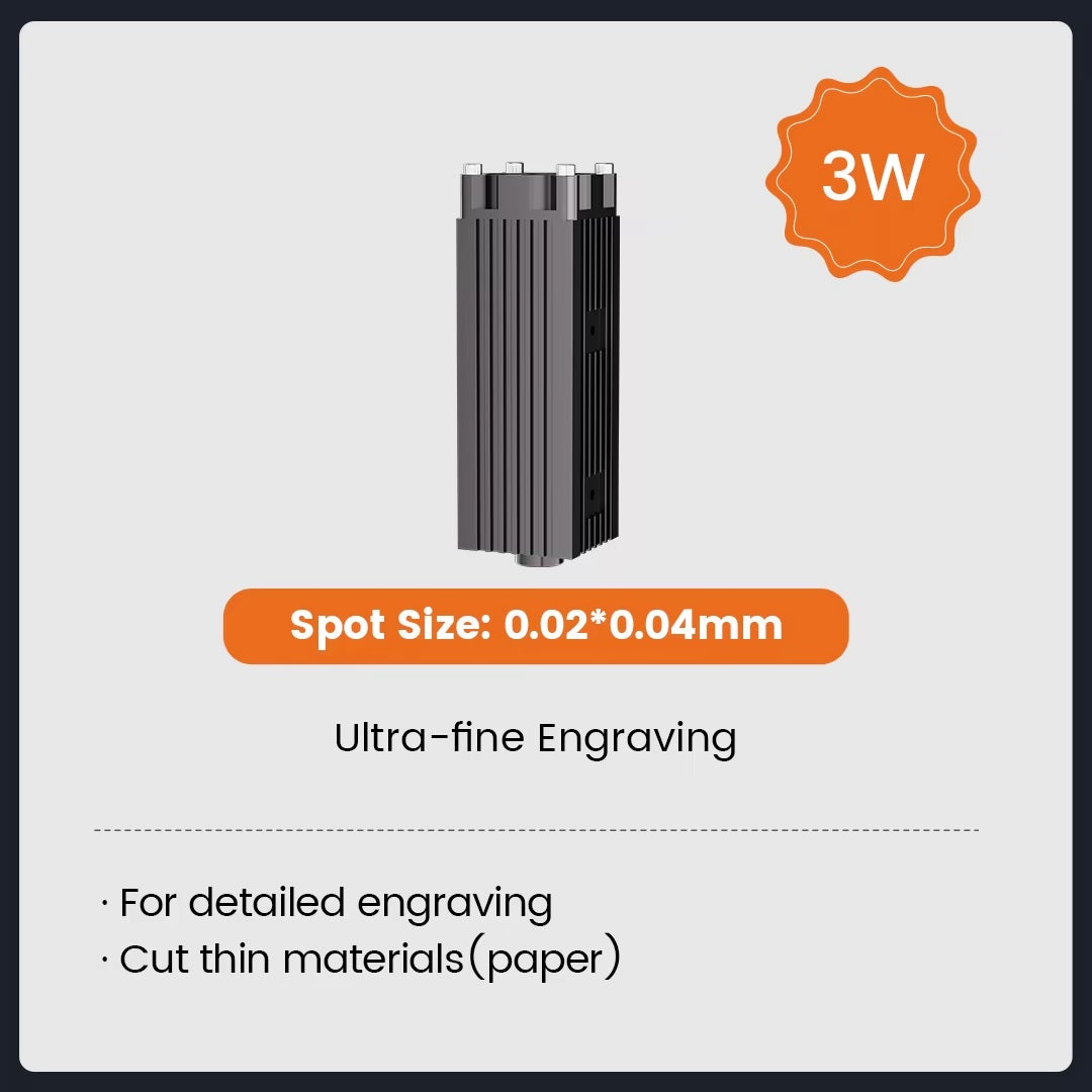 De PIXI-lasergraveermachine is uitgerust met een 3W diodeblauwe laser. De veel voorkomende graveermaterialen omvatten hout, papier, leer, karton, blad en metaal met coating.Kan niet markeren op roestvrij staal.Kan niet snijden.