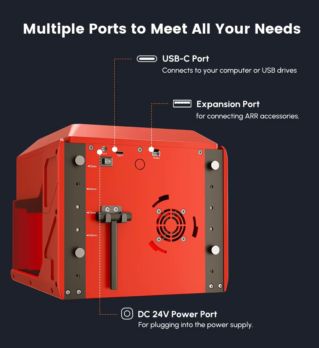 De Pixi beschikt over een met de hand gedraaide Z-as voor scherpstellen, met een instelknop aan de bovenkant en een beschermhoes.Hierdoor kunnen gebruikers eenvoudig in de hoogte van de laser bellen.