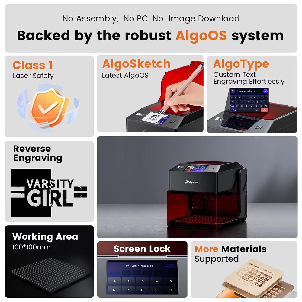 Gratis en gebruiksvriendelijke AlgoOS-software: ingebouwde bibliotheek voor massief materiaal en kofferbibliotheek, die parameteraanbevelingen biedt voor veelgebruikte materialen om u te helpen snel te beginnen met creëren.Het ondersteunt ook automatische identificatie van accessoires, vereenvoudigt de bediening en maakt het voor beginners en ervaren gemakkelijk om aan de slag te gaan.