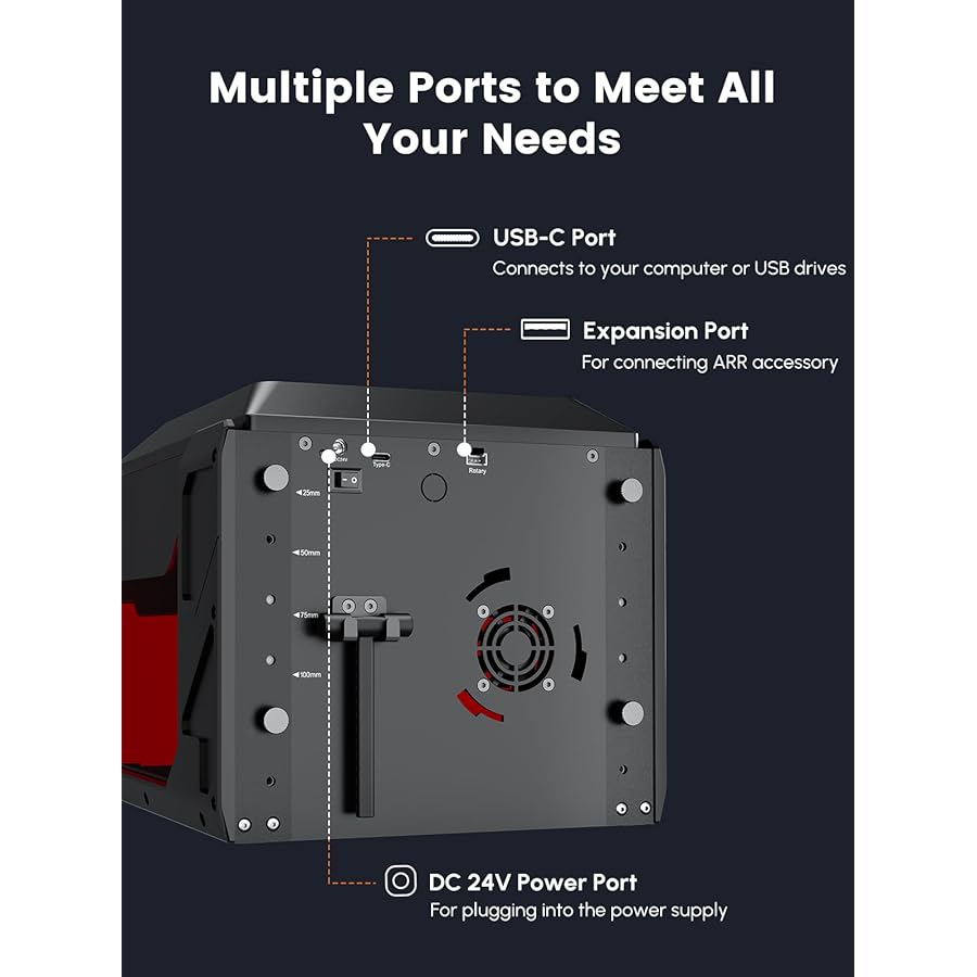 Laser Graveermachine Pixi 3W - 3.5 Inch Touchscreen - Laser Cutter - Laserprinter All In One - Graveren - Display - Zwart/Rood - Laser Snijmachine - Bedienbaar Met APP