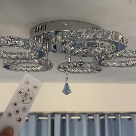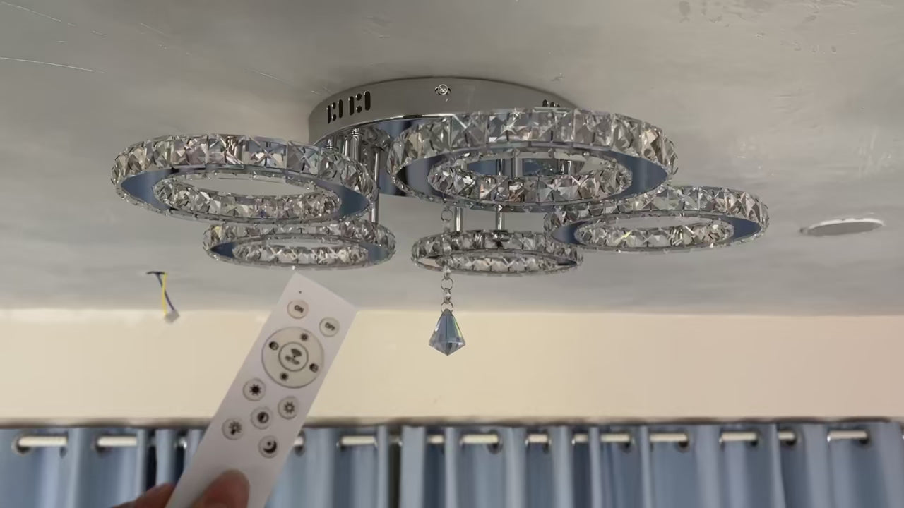LuxiLamps - 5 Heads Plafonnière - Dimbaar Met APP & Afstandsbediening - Moderne 5 Ringen Chroom Kroonluchter - Verlichting - LED Crystal Plafondlamp - 50W