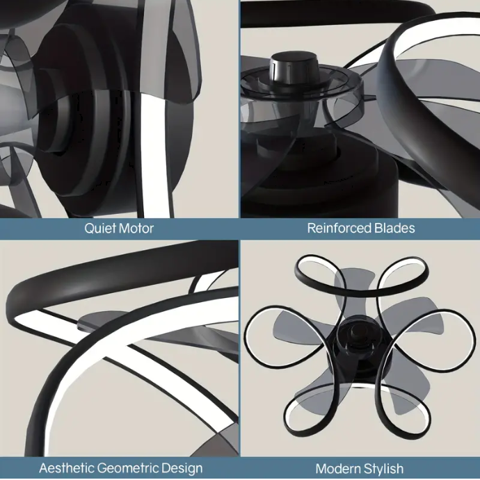 Ervaar de perfecte samensmelting van verlichting en verkoeling met de LuxiLamps Krullen Ventilator Plafondlamp. Deze moderne zwarte plafondventilatorlamp met dimmer en zes standen biedt niet alleen verfijnde verlichting, maar ook verfrissende luchtstroom voor je woonkamer, keuken of slaapkamer.