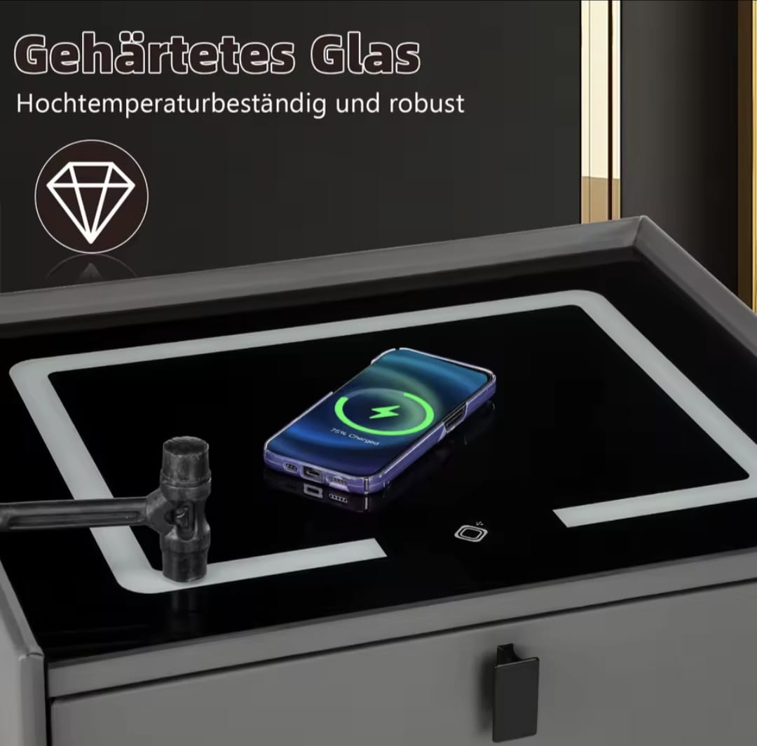 Nachtkast Met LED - 3 USB Poorten - Draadloos Opladen - Grijs - 2 Laden - 50x45x40cm - Slim Nachtkastje - Slaapkamer - 3 Kleuren LED